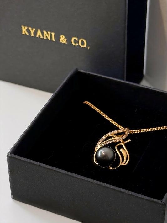 Moana Dark Tahitian Double Drop Pearl Necklace